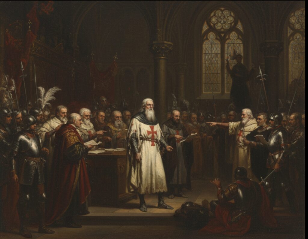 A manhã de sexta-feira, 13 de outubro de 1307, selou o destino oficial dos Templários. Em uma operação coordenada e sem precedentes, Filipe IV da França, “o Belo”, orquestrou a prisão em massa dos cavaleiros em território francês, sob acusações de heresia, idolatria (adoração a um ídolo de nome Baphomet), sodomia e rituais blasfemos. A confissão de muitos, arrancada sob tortura brutal, forneceu o corpus delicti necessário para justificar a dissolução da Ordem pelo Papa Clemente V em 1312, através da bula Vox in excelso. O Grão-Mestre Jacques de Molay, após anos de sofrimento, foi queimado na fogueira em 1314, supostamente lançando uma maldição sobre seus algozes, o rei e o papa, que faleceram pouco depois.